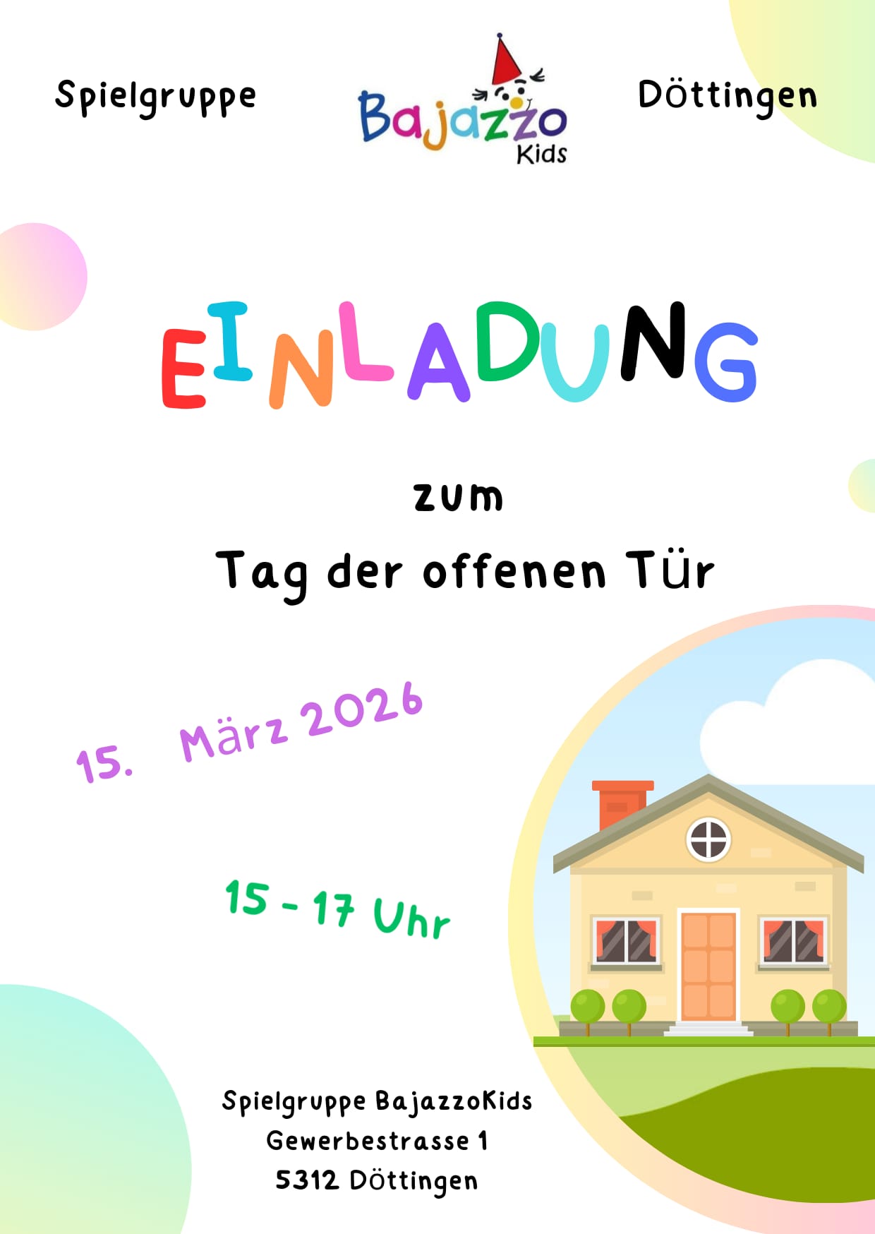 BajazzoKids bietet in Endingen, Zurzach und ab August 2025 auch in Döttingen Indoor-Spielgruppen und weitere Angebote wie Chrabbelgruppe, Chindsgiwald und Mamisport mit Mareen.