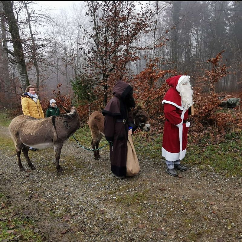 Wiederum besuchen Samichlaus und Schmutzli die BajazzoKids auf dem Achenberg. Begleitet werden sie von den Eseln Pedro und Bonita.